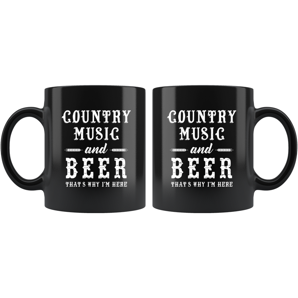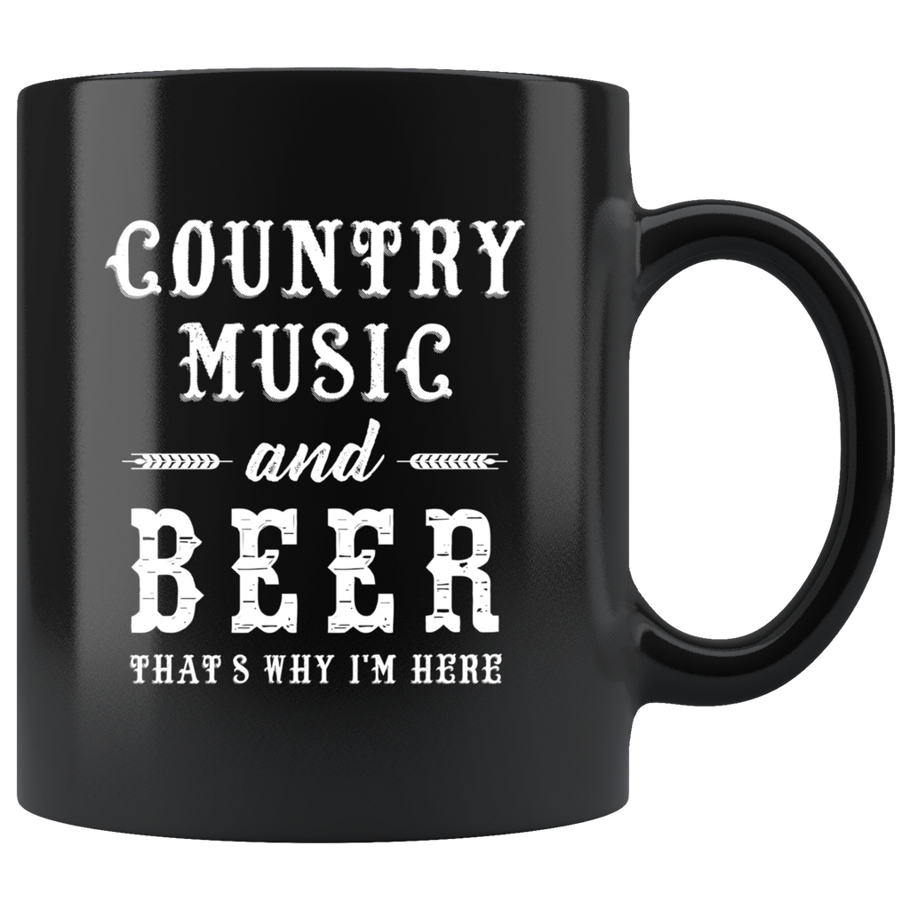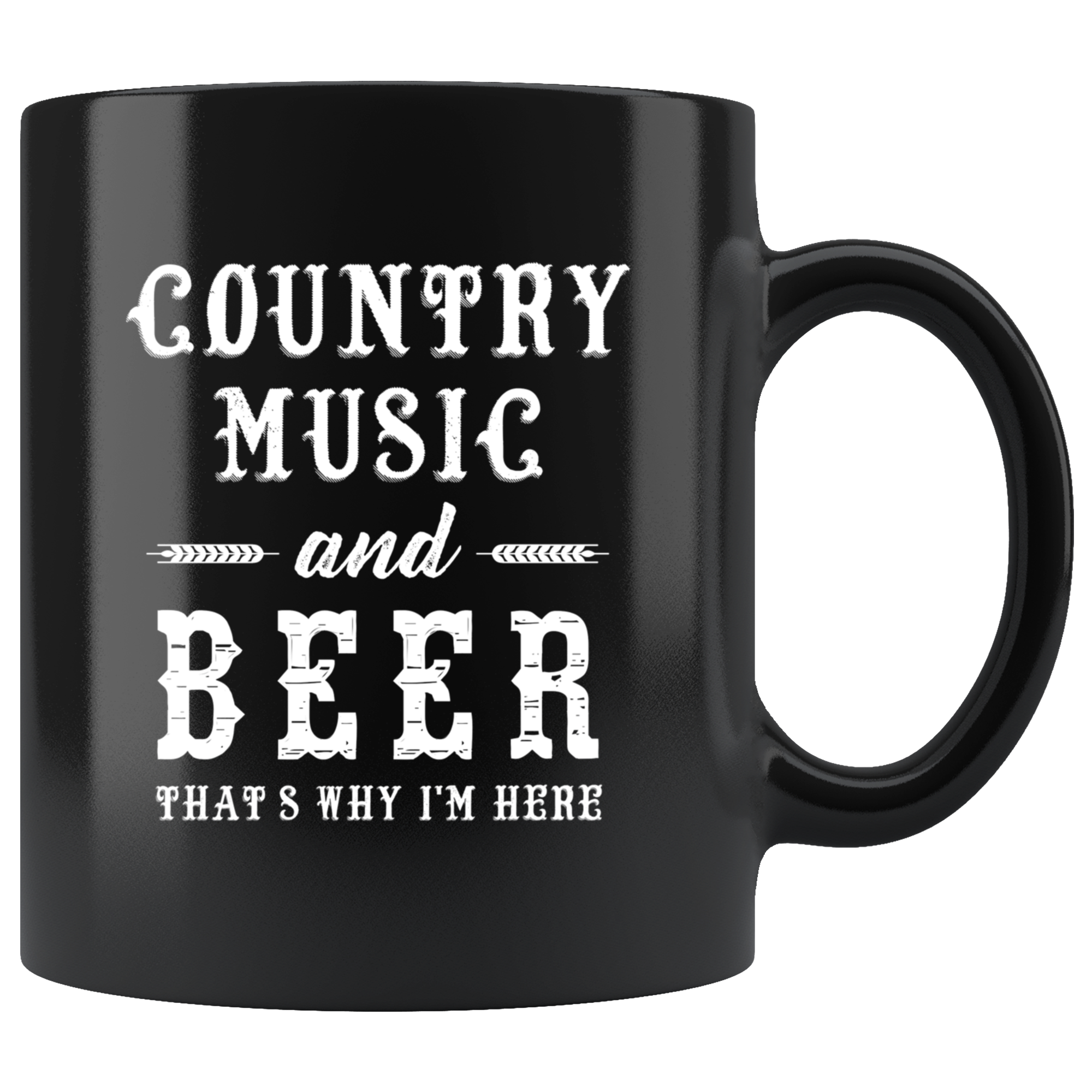 Country Music And Beer That's Why I'm Here 11oz Black Mug