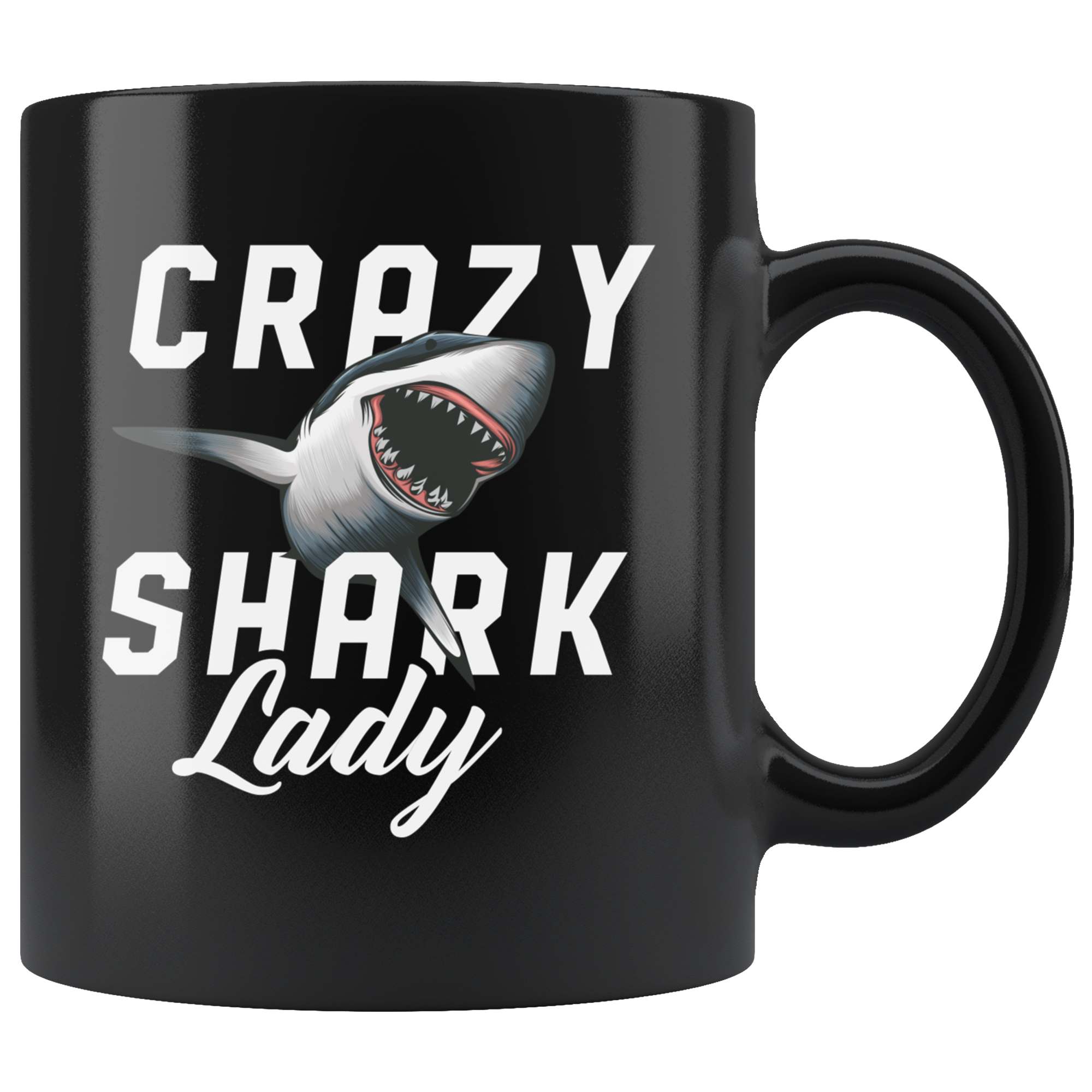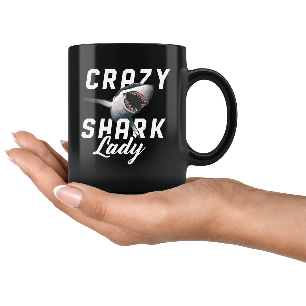 Crazy Shark Lady 11oz Black Mug