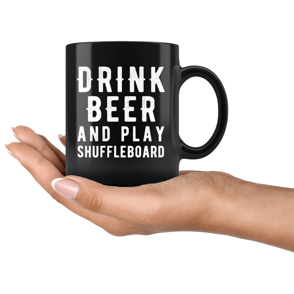 Drink Beer And Play Shuffleboard 11oz Black Mug