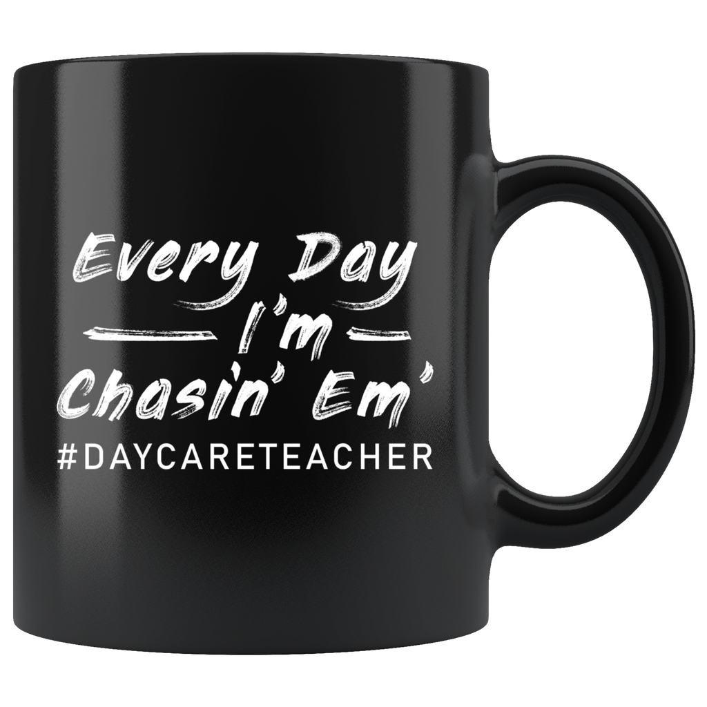 Every Day I'm Chasin' Em' #DAYCARETEACHER 11oz Black Mug