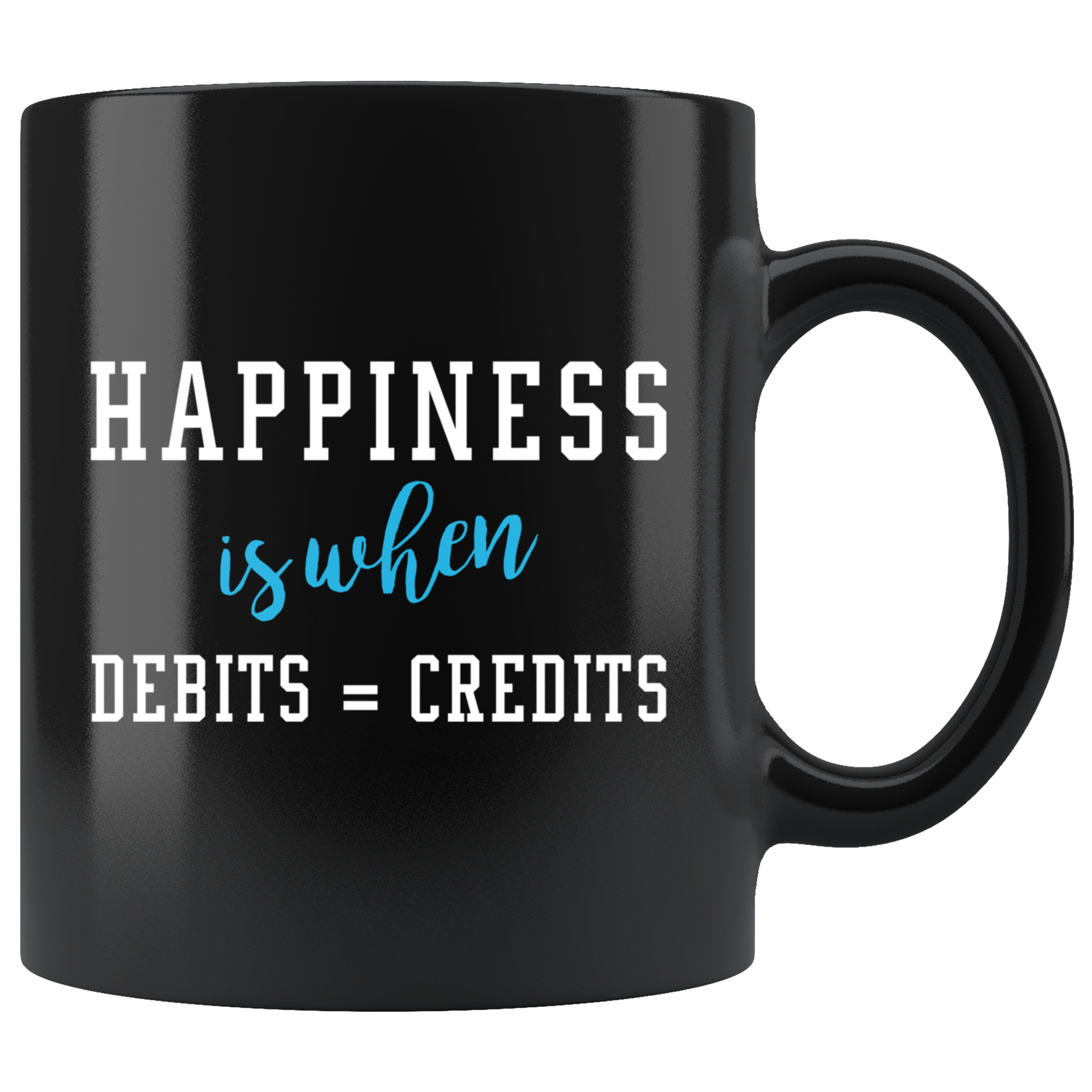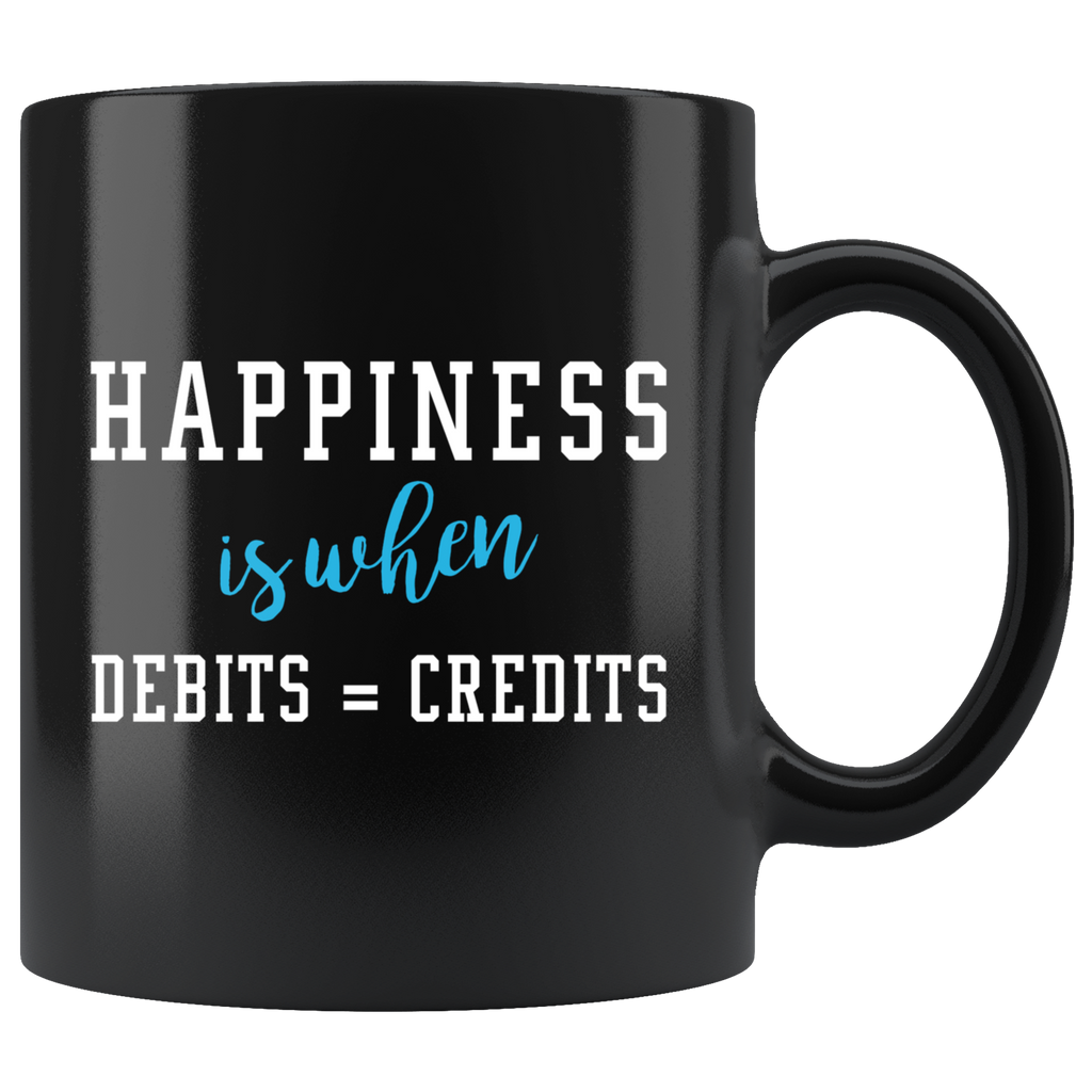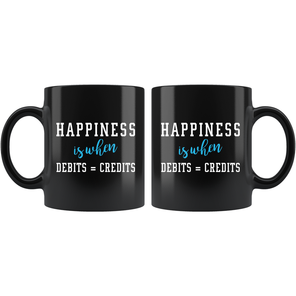 Happiness Is When Debits = Credits 11oz Black Mug