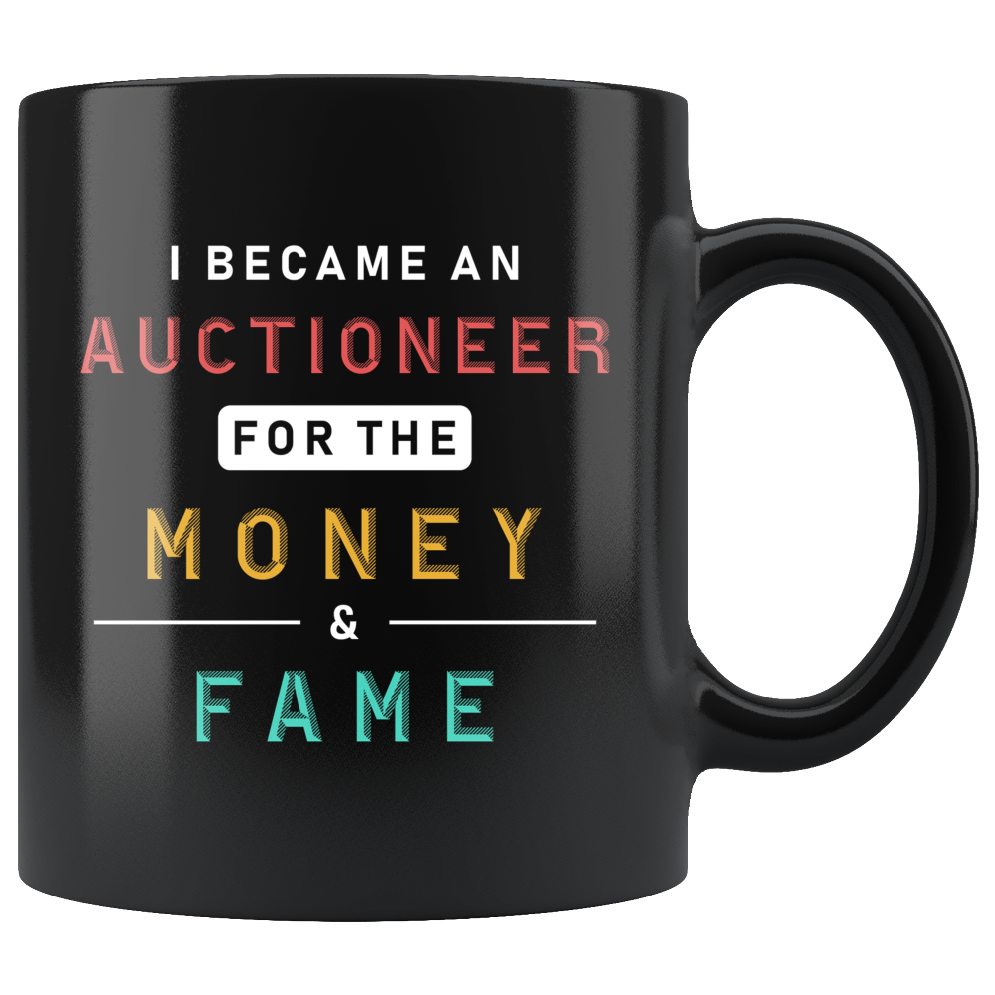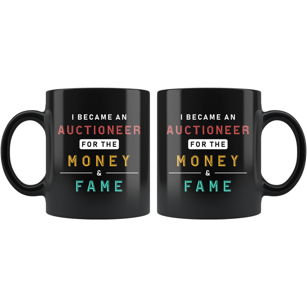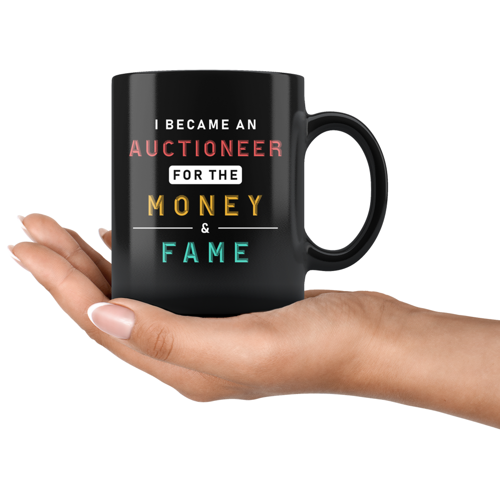 I Became An Auctioneer For The Money & Fame 11oz Black Mug