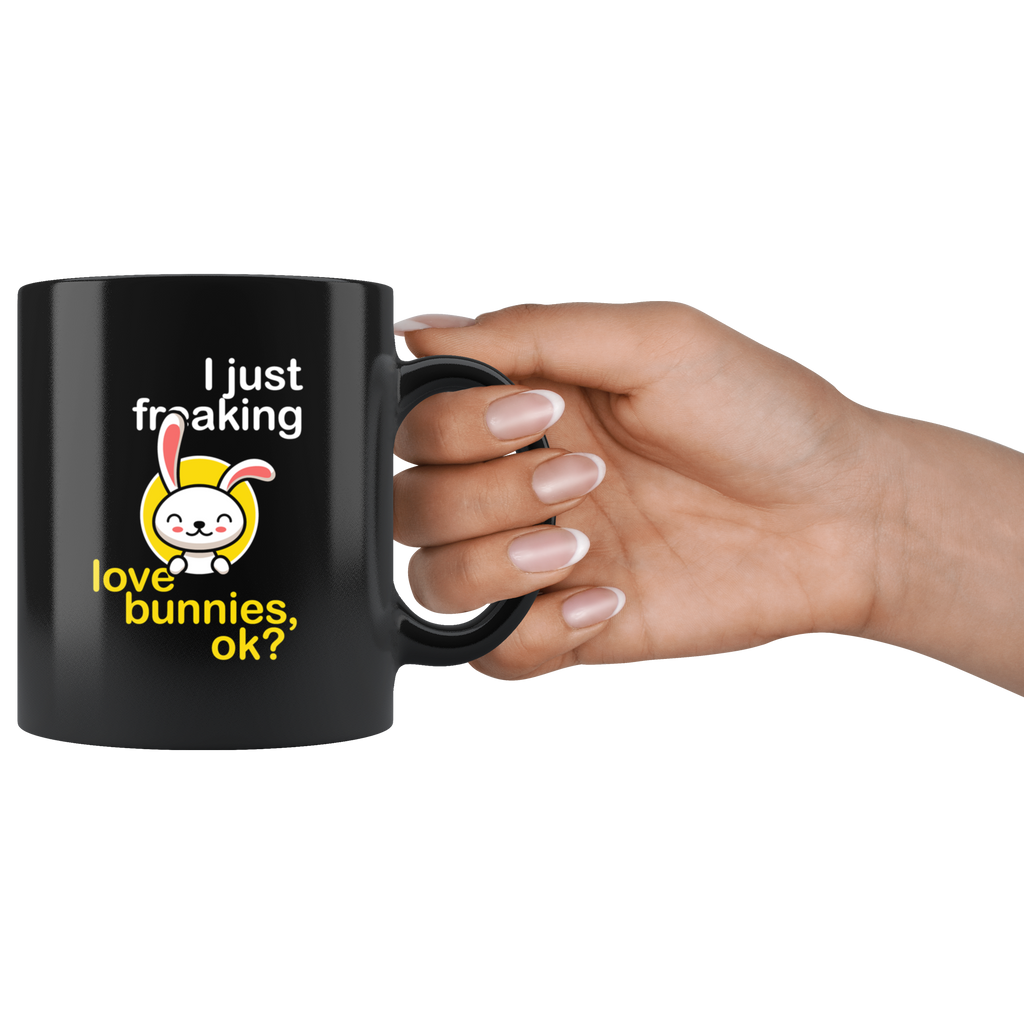 I Just Freaking Love Bunnies, Ok? 11oz Black Mug
