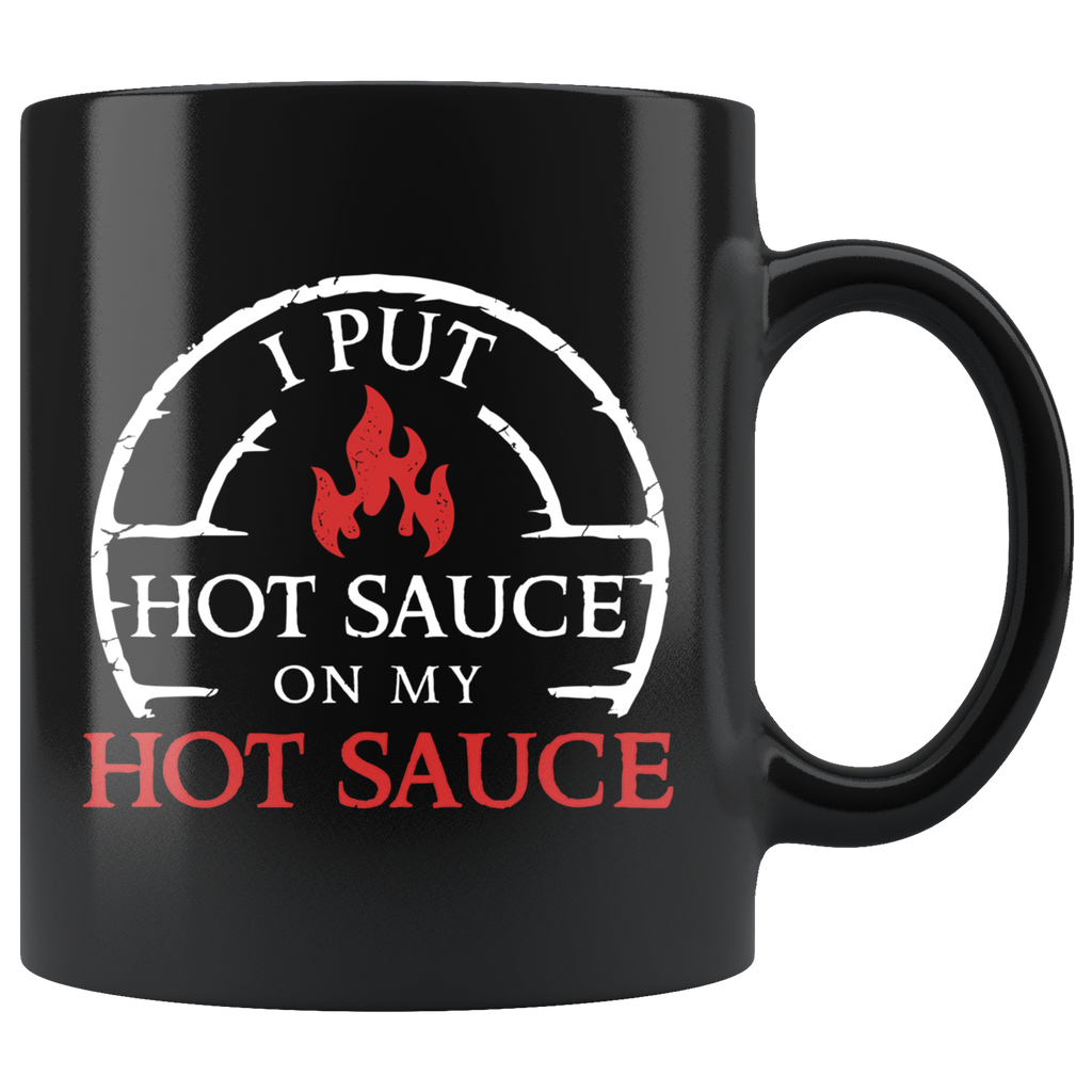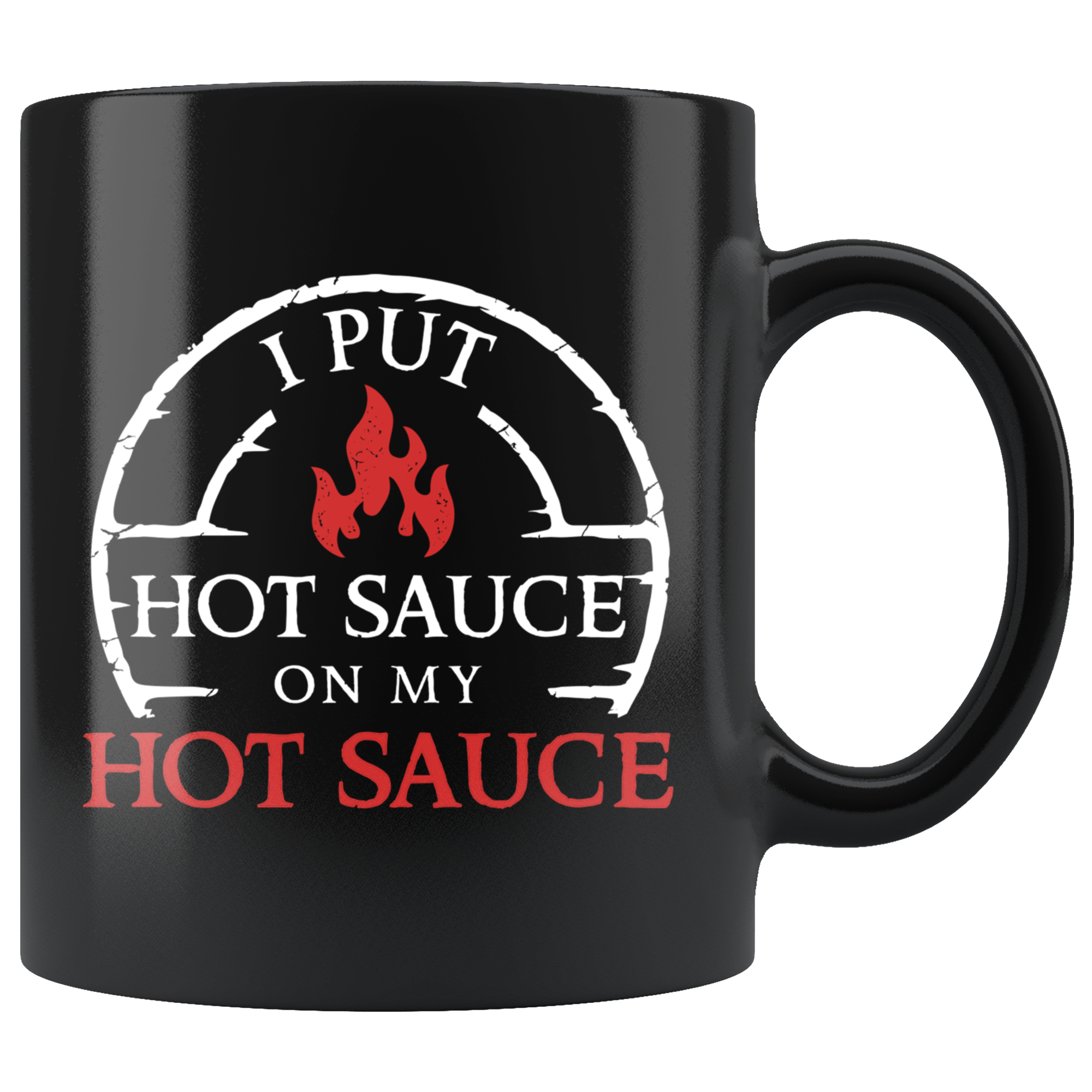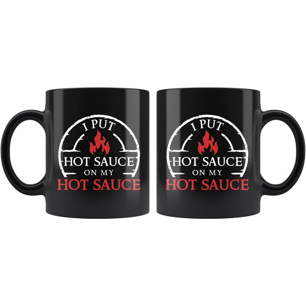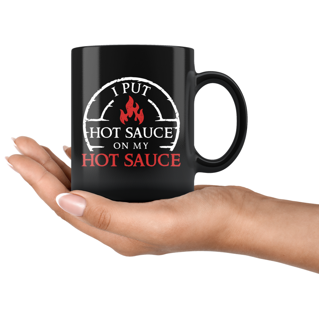 I Put Hot Sauce On My Hot Sauce 11oz Black Mug