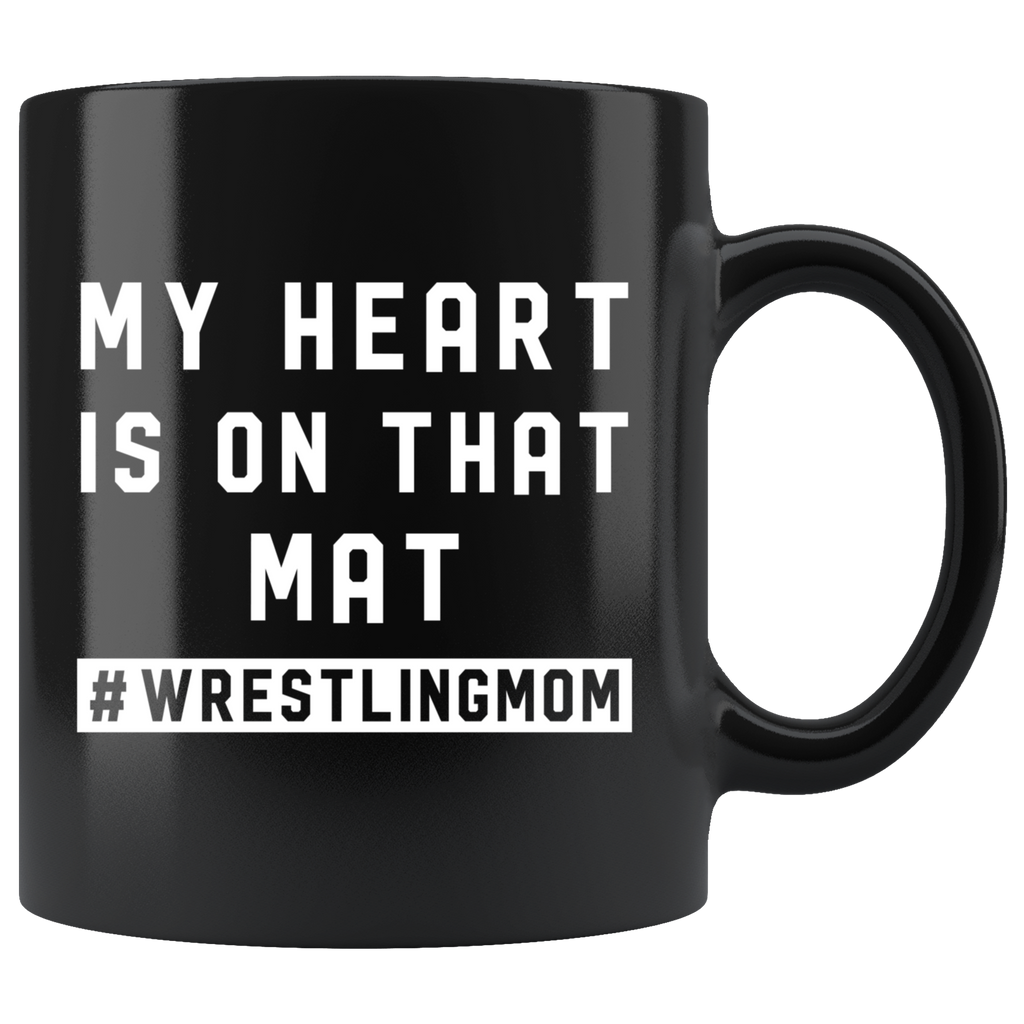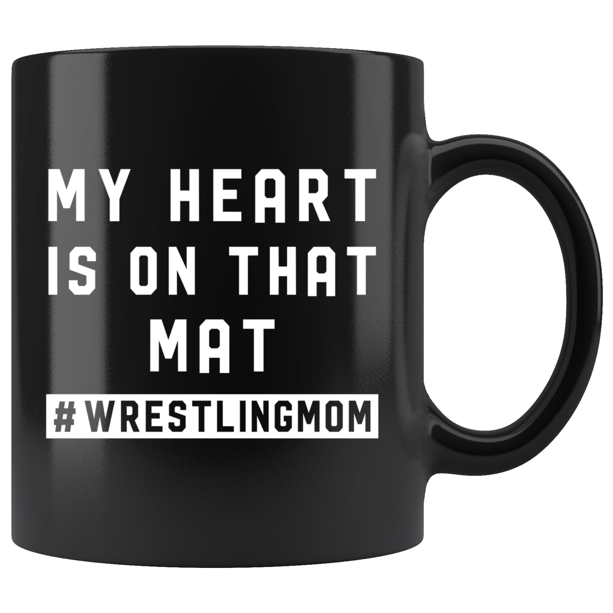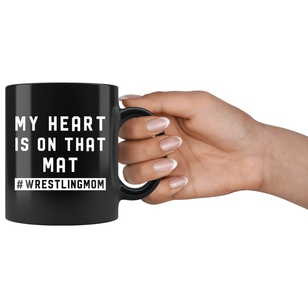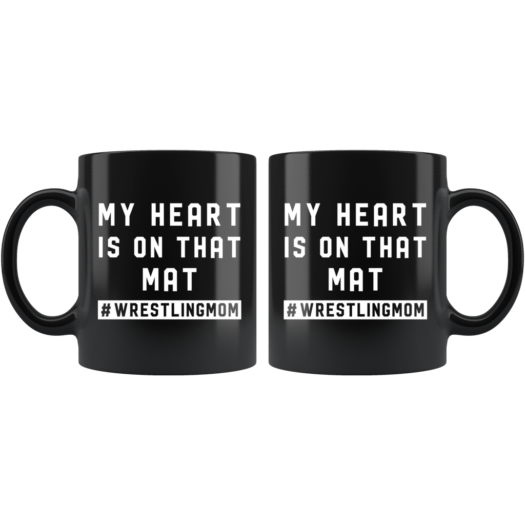My Heart Is On That Mat #wrestlingmom 11oz Black Mug