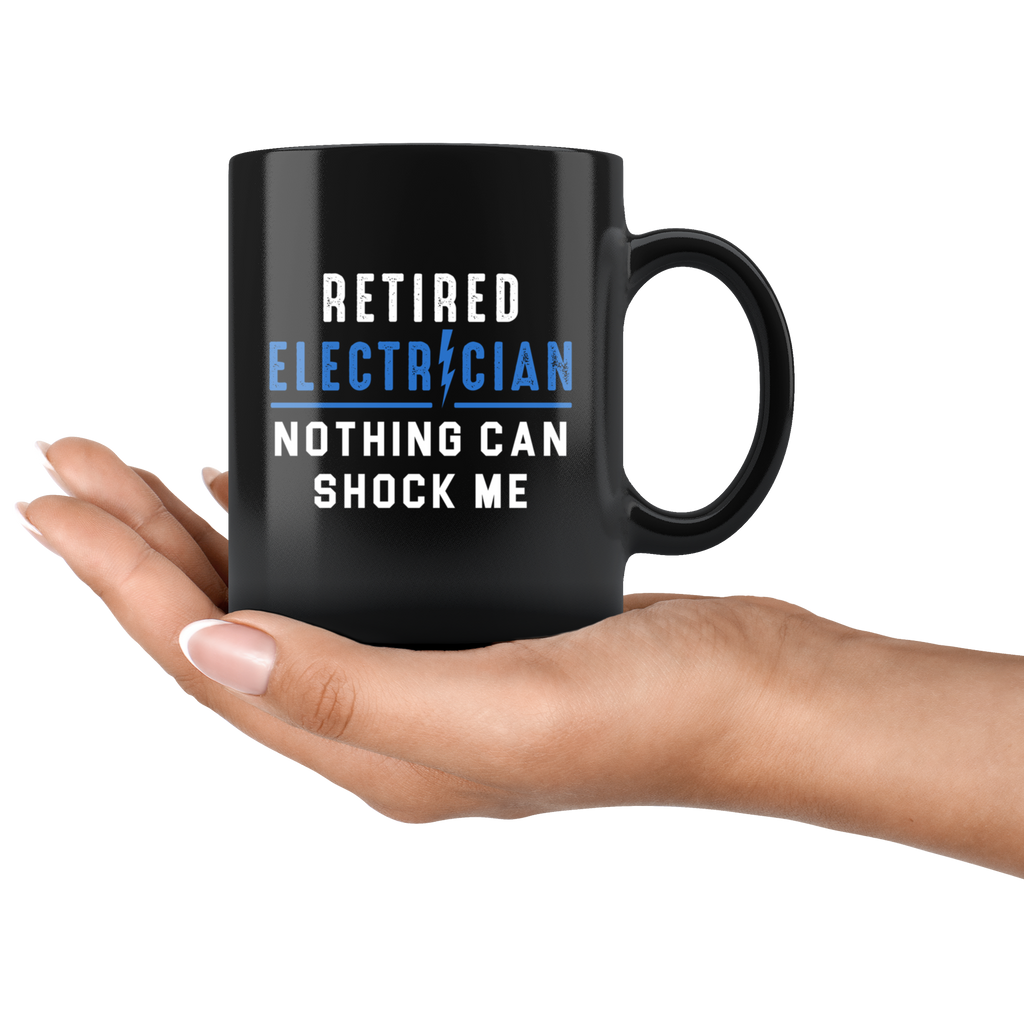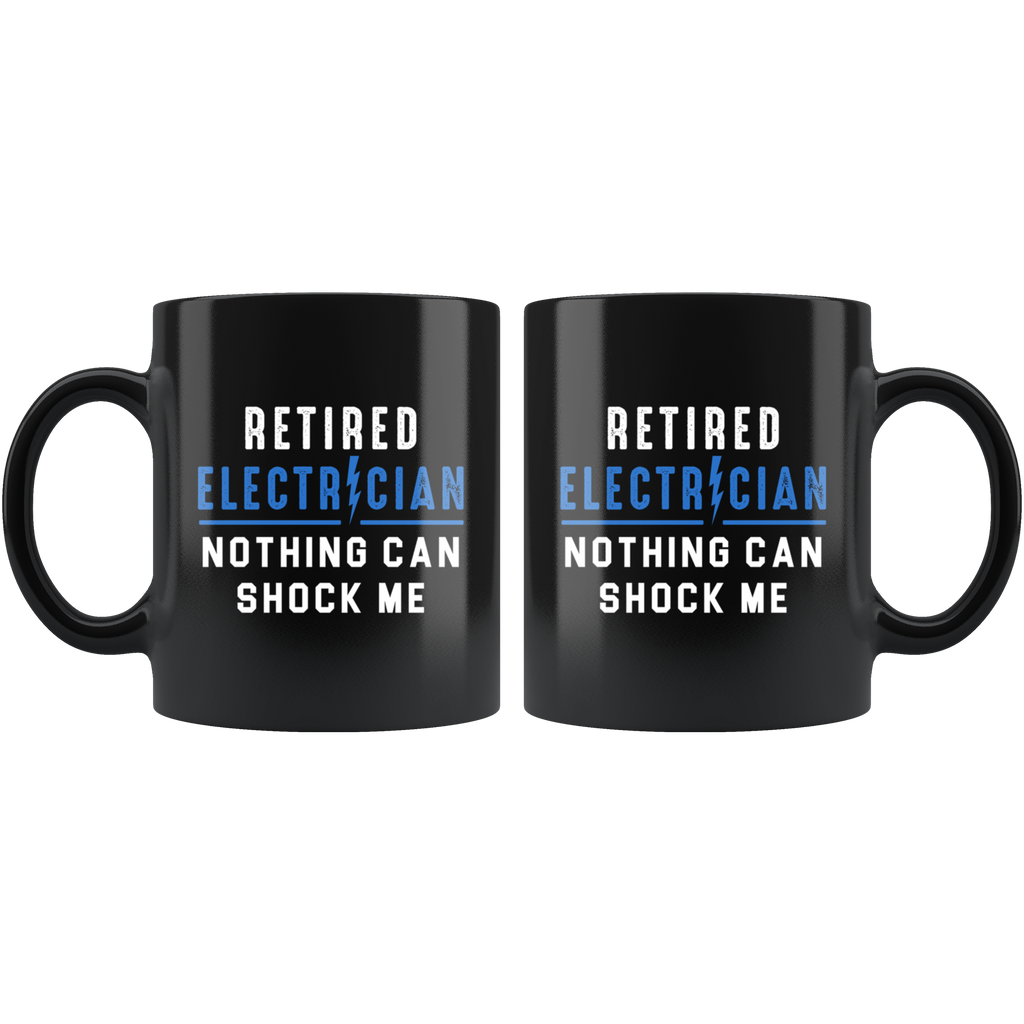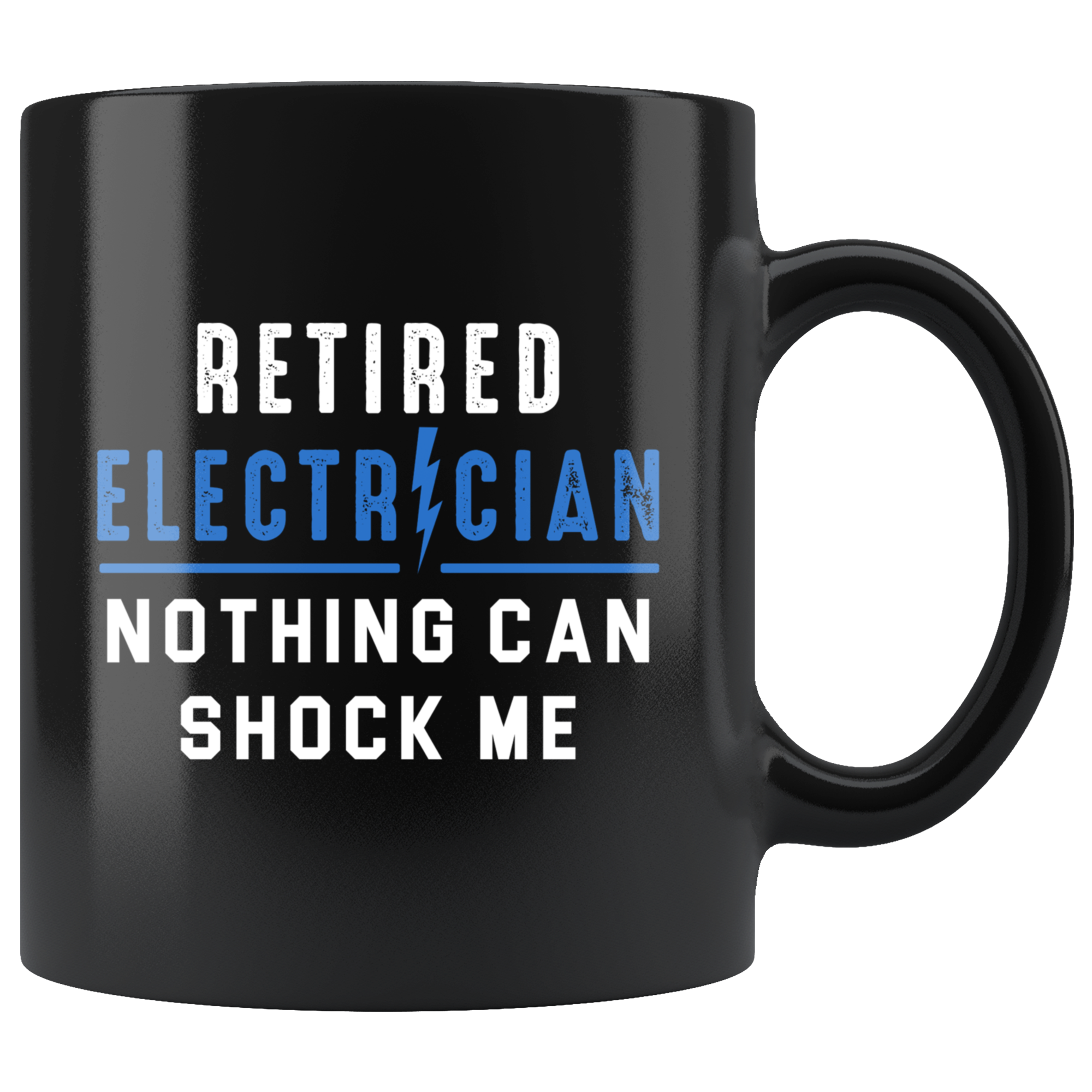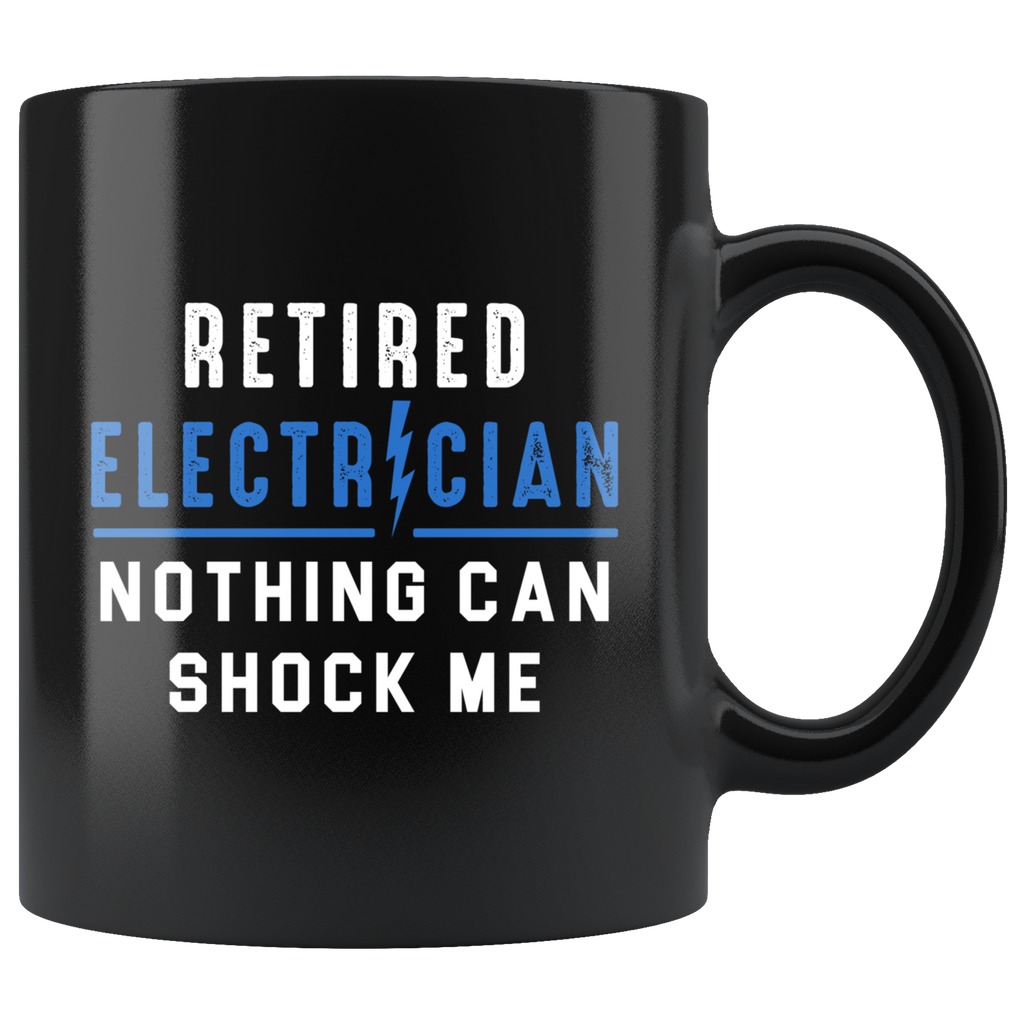 Retired Electrician Nothing Can Shock Me Anymore 11oz Black Mug