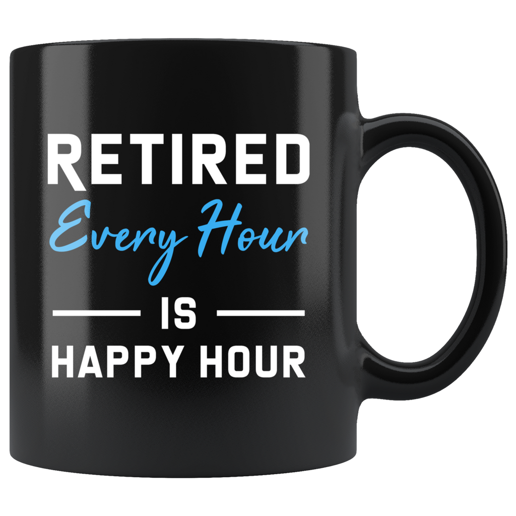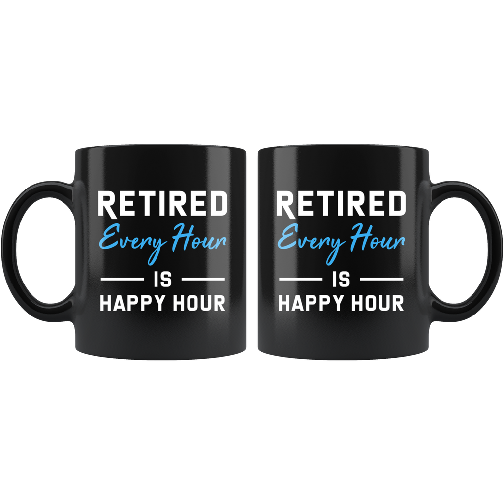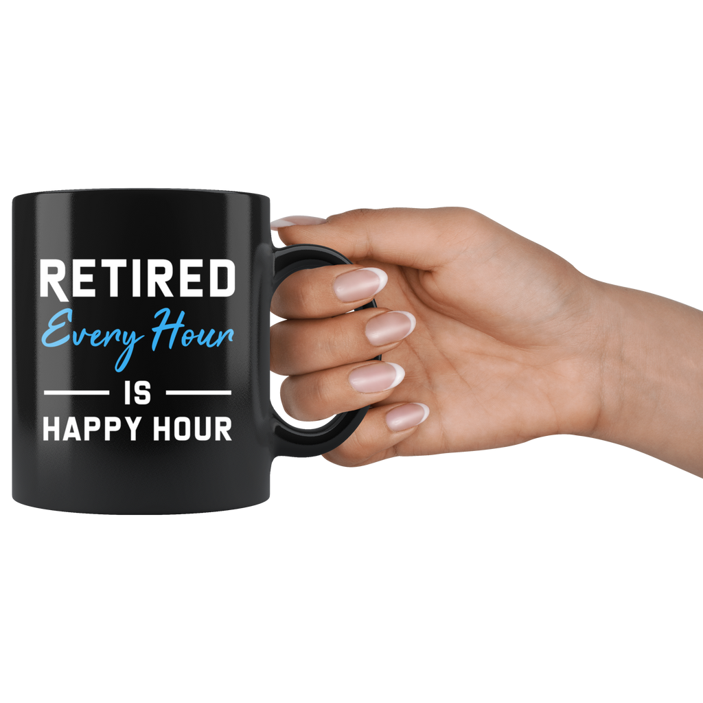 Retired Every Hour Is Happy Hour 11oz Black Mug
