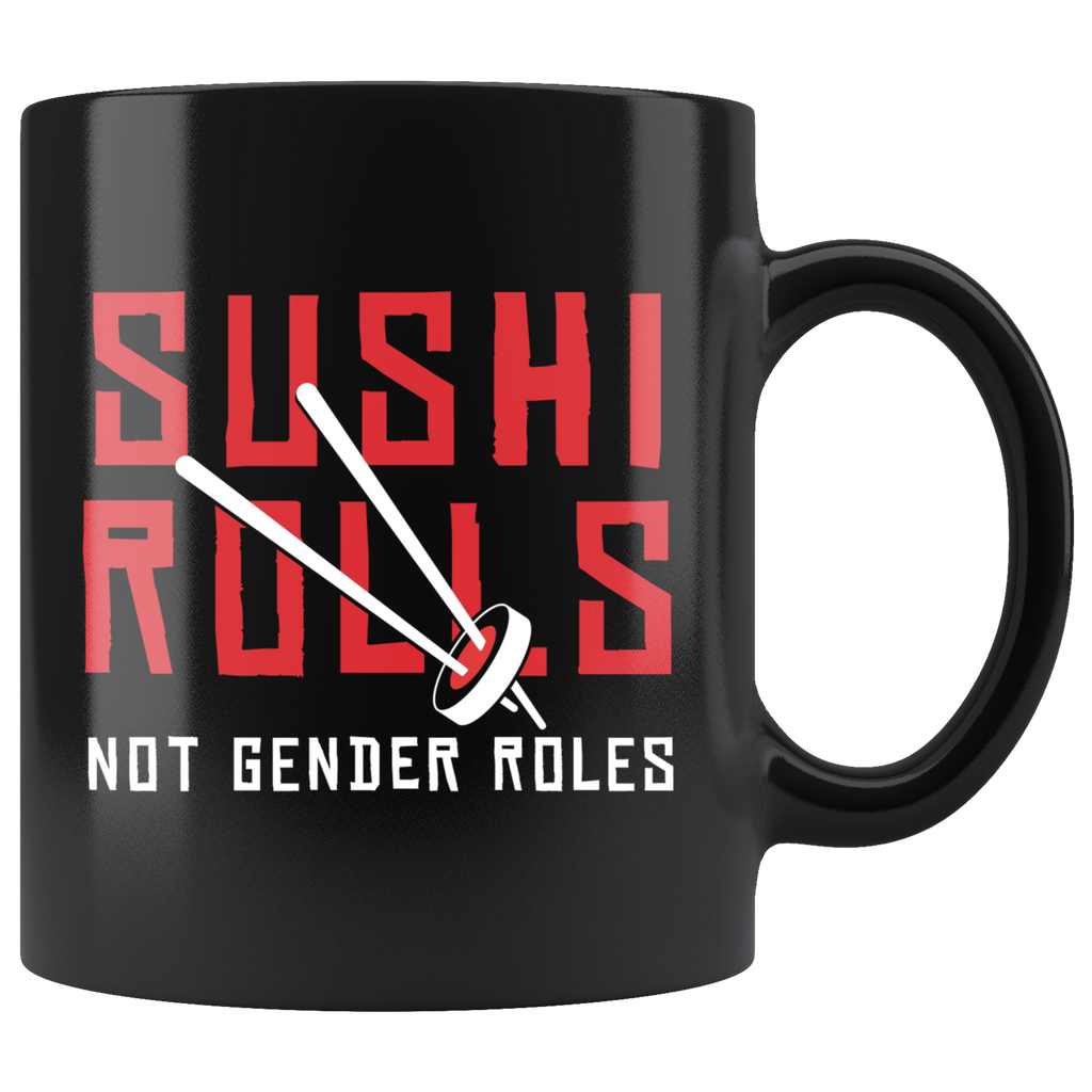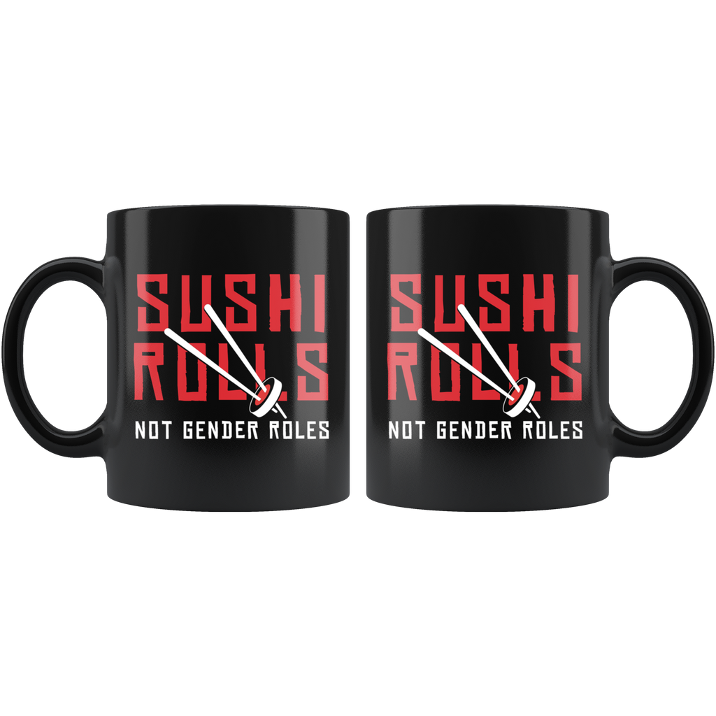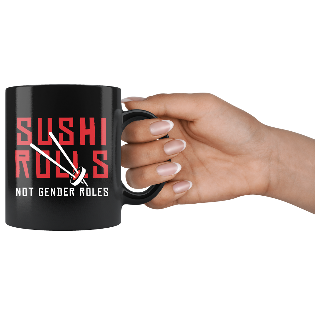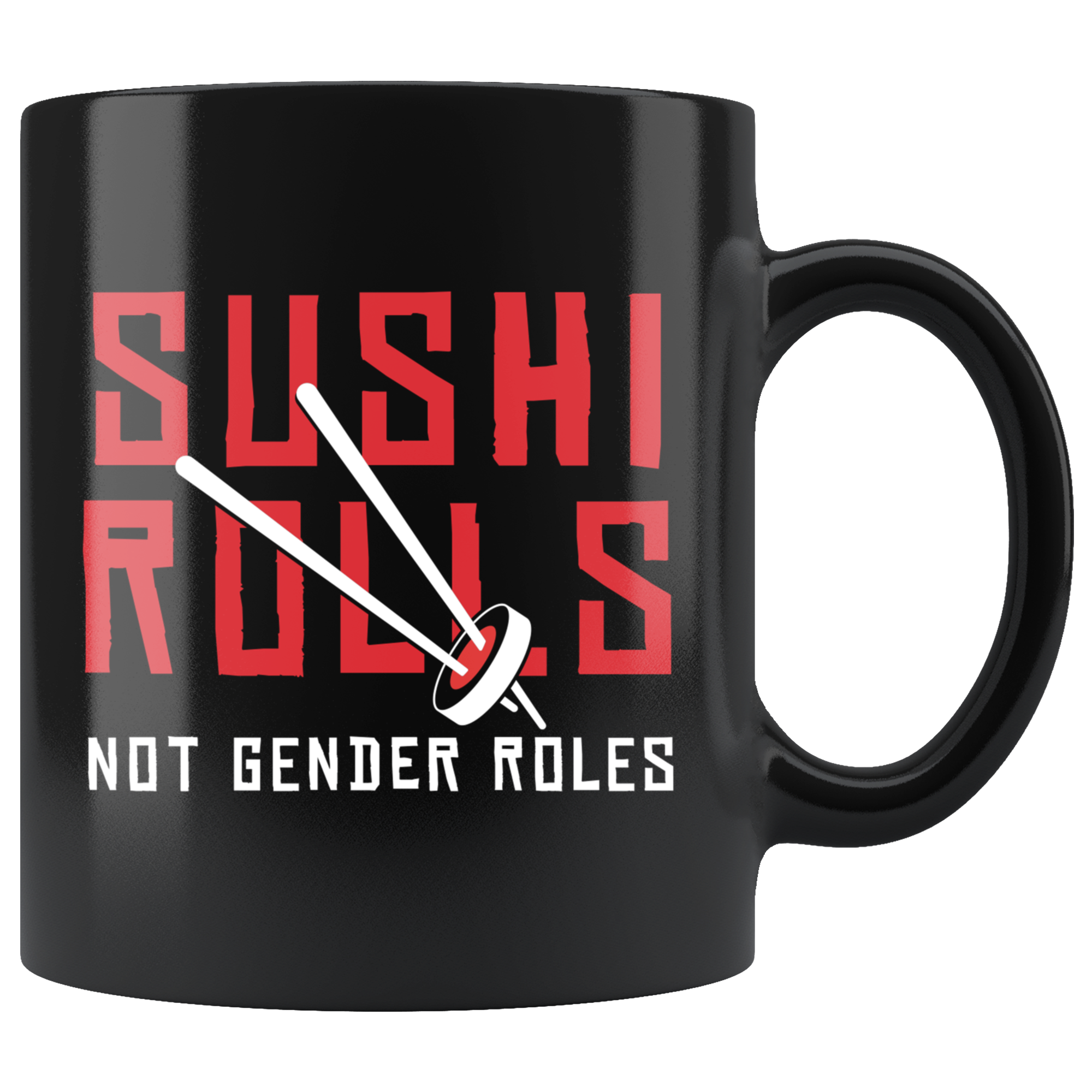 Sushi Rolls Not Gender Roles 11oz Black Mug